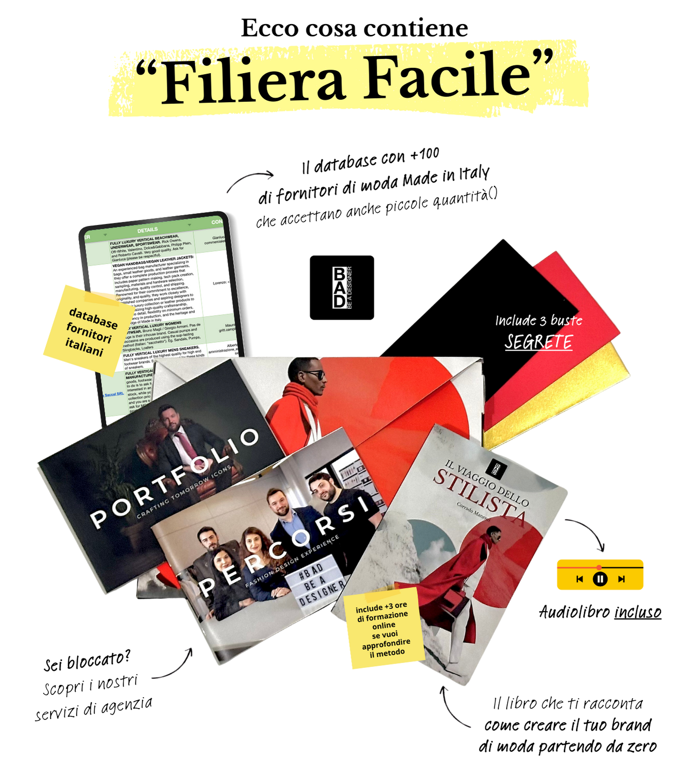 Ho creato l’ufficio stile Be A Designer proprio per accompagnare i nuovi stilisti a lanciarsi con metodo. Ecco perché in queste pagine ho racchiuso tutto ciò che avrei voluto avere io all’inizio della mia carriera: una guida operativa che non ti mostra solo la parte “glamour” della moda, ma la verità su come partire, crescere e rendere sostenibile il tuo sogno.